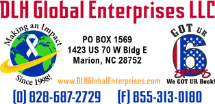 Mailing Address: PO Box 1569 Marion, NC 28752-1569 Office: (828) 687-2729 Fax: (855) 313-0180 email: sales@dlhglobalenterprises.com